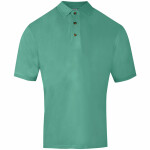 80% cotton/20% polyester. Piqué faced fabric. Drop shoulder style. Regular fit. Double layer self fabric collar, cuffs and hem. Jersey taped neck and inner collar. Ribbed cuffs and hem. Coverseam detail. Tear out label.