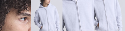 70% ringspun cotton/20% polyester/10% recycled polyester.* Cotton faced fabric. Brushed back fleece. Drop shoulder style. Oversized fit. Three panel double fabric hood. Full length two way zip. Front pouch pockets. Ribbed cuffs and hem. Twin needle stitching. Tear out label.