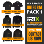 You get: A choice of 3 ProRTX Polo Shirts or T-Shirts (you can Mix n Match!), A ProRTX Hoodie or Sweatshirt and a ProRTX Fleece or Softshell Jacket!