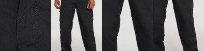 Stain resistant Du Pont™ Teflon® coating. Belt loops. YKK zip. Reinforced seat. Media pouch. Triple stitched pocket openings and inseams.