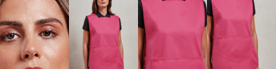 Large patch pocket. Adjustable stud side tabs. Colour matched bias trim edges. Length 68cm. Industrial laundry 85°C. Domestic wash 60°C.