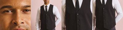Easy care fabric. Fully lined. Four button contemporary style. Two functional watch pockets. Satin back. Back adjusters.