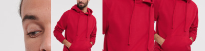 80% combed ringspun cotton/20% polyester. Cotton faced fabric. Brushed back fleece. Drop shoulder style. Double fabric hood with topstitch detail. Flat lace drawcord with buttonhole eyelets. Taped neck. Front pouch pocket with bartacks. Ear phone access. 1x1 ribbed cuffs and hem. Coverseamed around hood, shoulders, armholes, cuffs and hem.