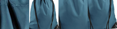 Water resistant fabric. Drawstring carry handles. Reinforced corners with gunmetal eyelets. Capacity 11 litres.