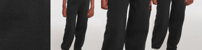 50% combed ringspun cotton/50% polyester. Elasticated waistband and ankles. Deep side pockets. No outside leg seam.