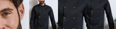 With easy care fabric, and removeable black studs the premier unisex cuisine chef’s jacket is ideal for all chefs. Turn back split sleeves make it easy to roll up the sleeves without stretching the material, and a mandarin collar with topstitching provides added strength around the seams while maintaining a professional finish.