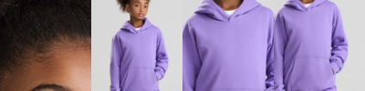 Soft cotton faced fabric. Drop shoulder style. Double fabric hood. No drawcords to comply with EU regulations. Front pouch pocket with opening for ear phone cord feed. Ribbed cuffs and hem.